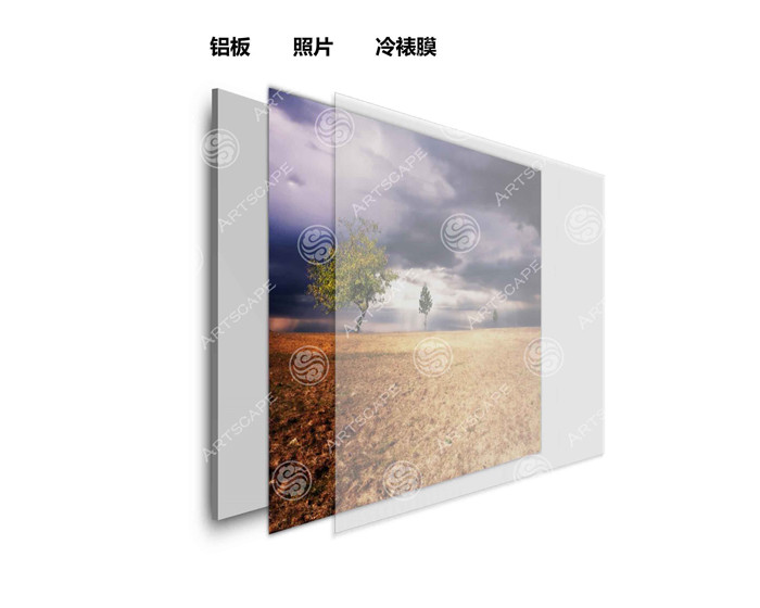 将打印好的照片直接装裱在铝板上,这是现在很流行的一种装裱方式。最大限度的保证了作品的整体呈现,效果平整简约,能使作品更直接地吸引眼球。非常适合于摄影艺术展览以及装饰使用。